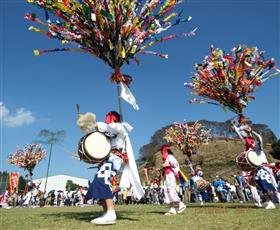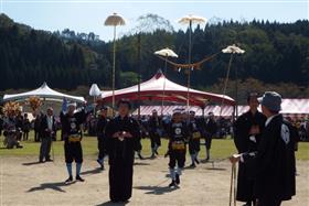 宇目の最大行事として、毎年9月下旬に宇目B&G海洋センターで開催。300年以上続く、地域住民の誇れる祭りである「椿原祭典」と「八匹原祭典」を合同開催するもの。古くから伝わる多くの郷土芸能が一堂に会し、楽や舞を披露します。後継者・担い手不足の解消や、お祭りをより盛大に開催し存続させていくため、平成25年度からうめ秋大祭として合同開催となっています。