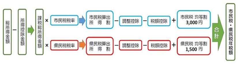 市民税:3,000円、県民税:1,500円 (年額)です。
