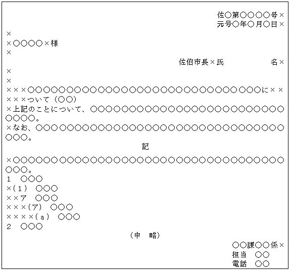 第6条 公文書の形式については、おおむね別記の基準による。